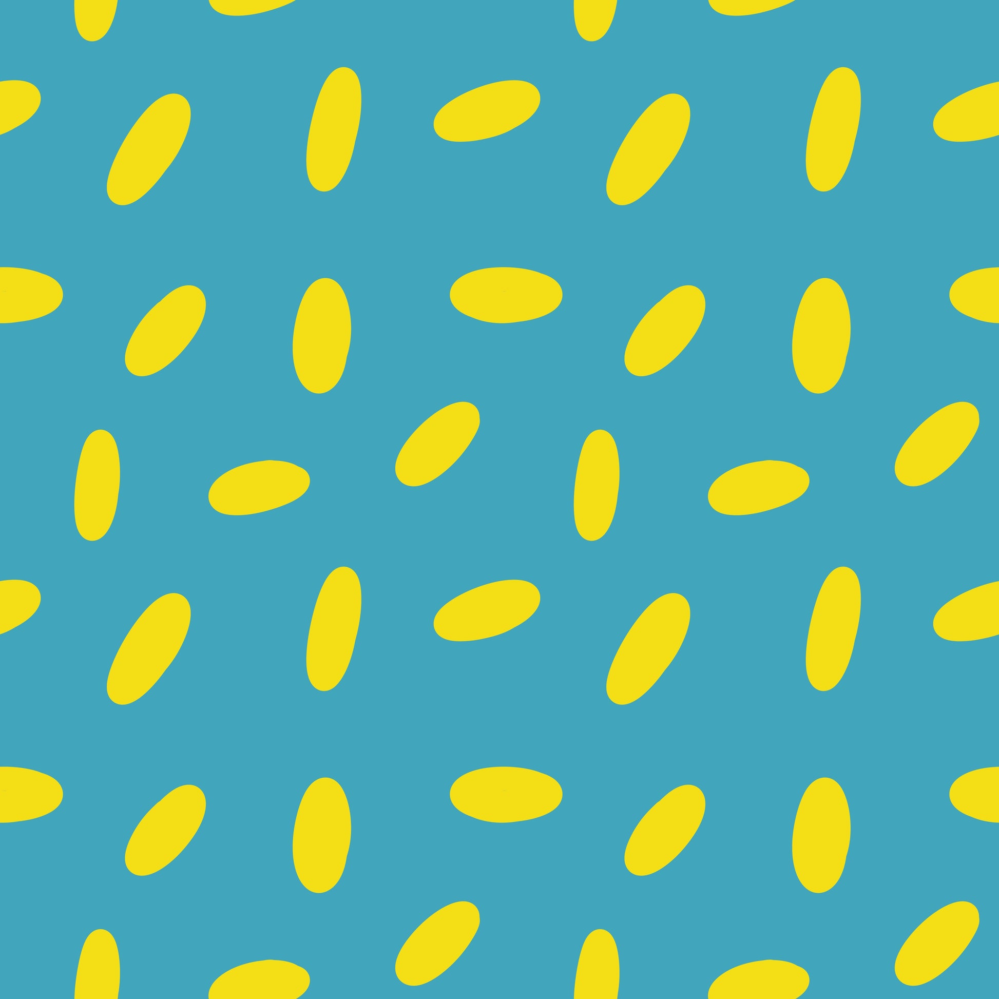 Einfach, rhythmisch und fröhlich. Der Kontrast von Blau und Gelb ist ein Volltreffer. Ein lockeres geometrisches Muster, das nicht ermüdet und jedem Projekt Licht verleiht.