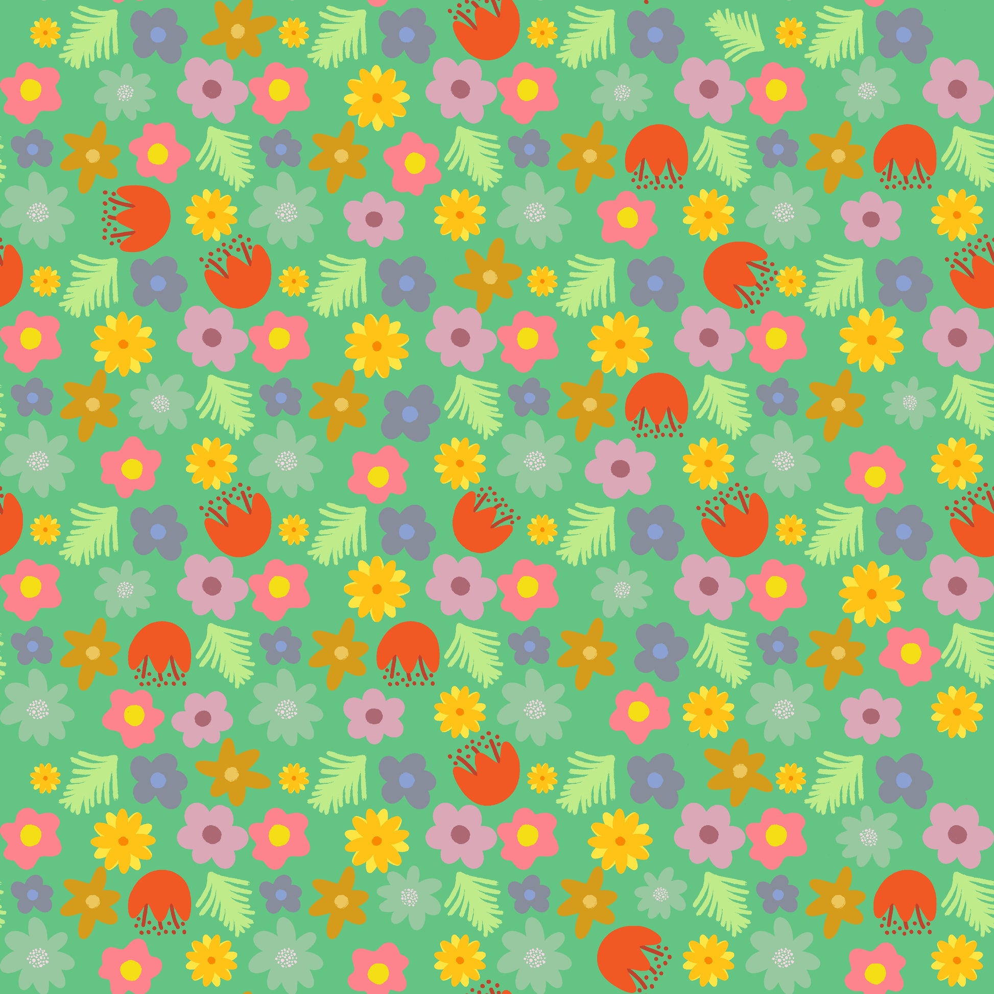 Voll von Details und Farben füllt dieses Muster den gesamten Stoff mit Blumen, Blättern und kleinen botanischen Elementen auf einem frischen grünen Hintergrund. Es ist die Art von Muster, die sich sehr praktisch kombinieren lässt: Da es dicht ist, kaschiert es Nähte und Schnitte sehr gut und ist ideal für Anfänger. Vielseitig für fast alles, von Haarbändern und kleinen Accessoires bis hin zu lebendigen Kleidungsstücken.