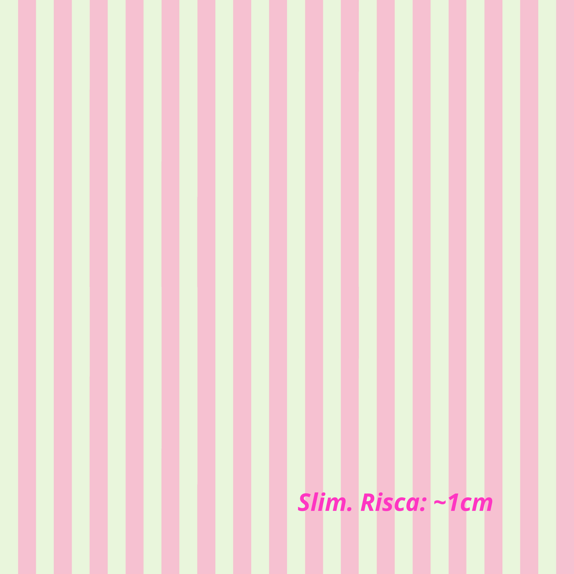 Eine sehr süße Farbkombination. Das sanfte Rosa trifft auf ein sehr blasses Grün (fast Creme) in Streifen, die Ruhe und Geborgenheit ausstrahlen. Es hat einen altmodischen und nostalgischen Charakter, der zu allem passt, besonders zum Muster Rosa Blumen & Hellgrüner Hintergrund.