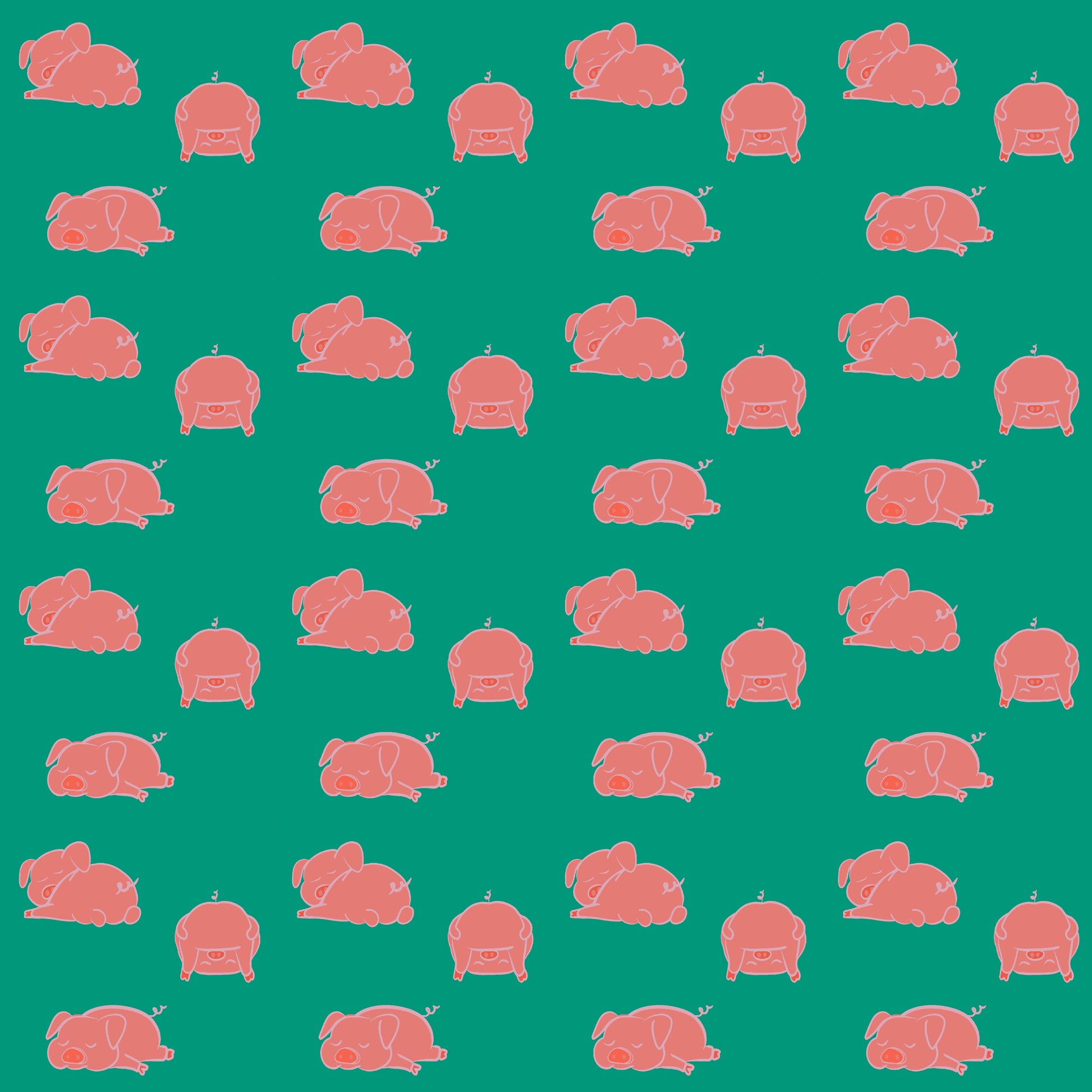 Pink piglets in different positions on a green background.