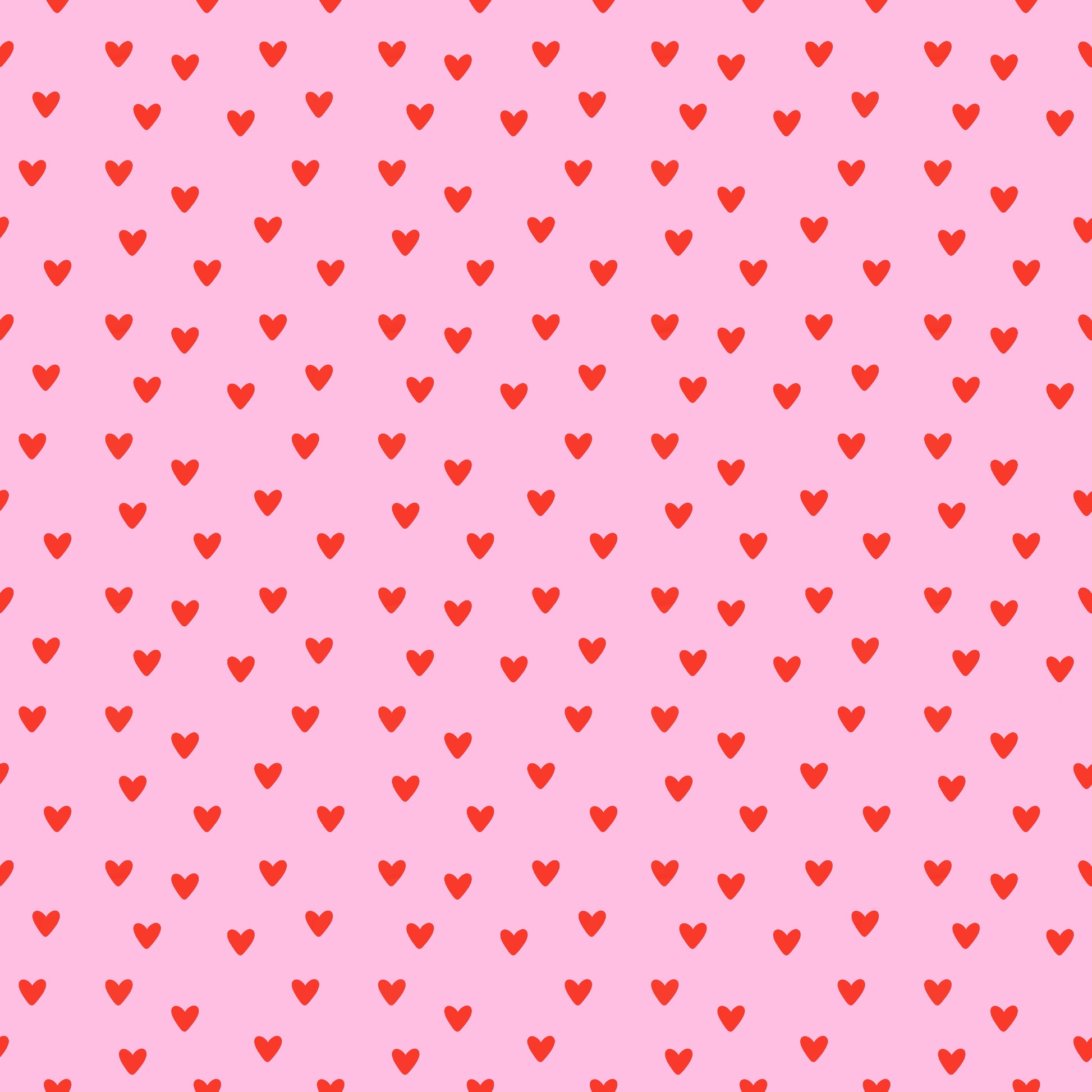Small red hearts scattered on a baby pink background. It is classic, timeless, and looks great mixed with other patterns (how about mixing with the Wavy Check?).