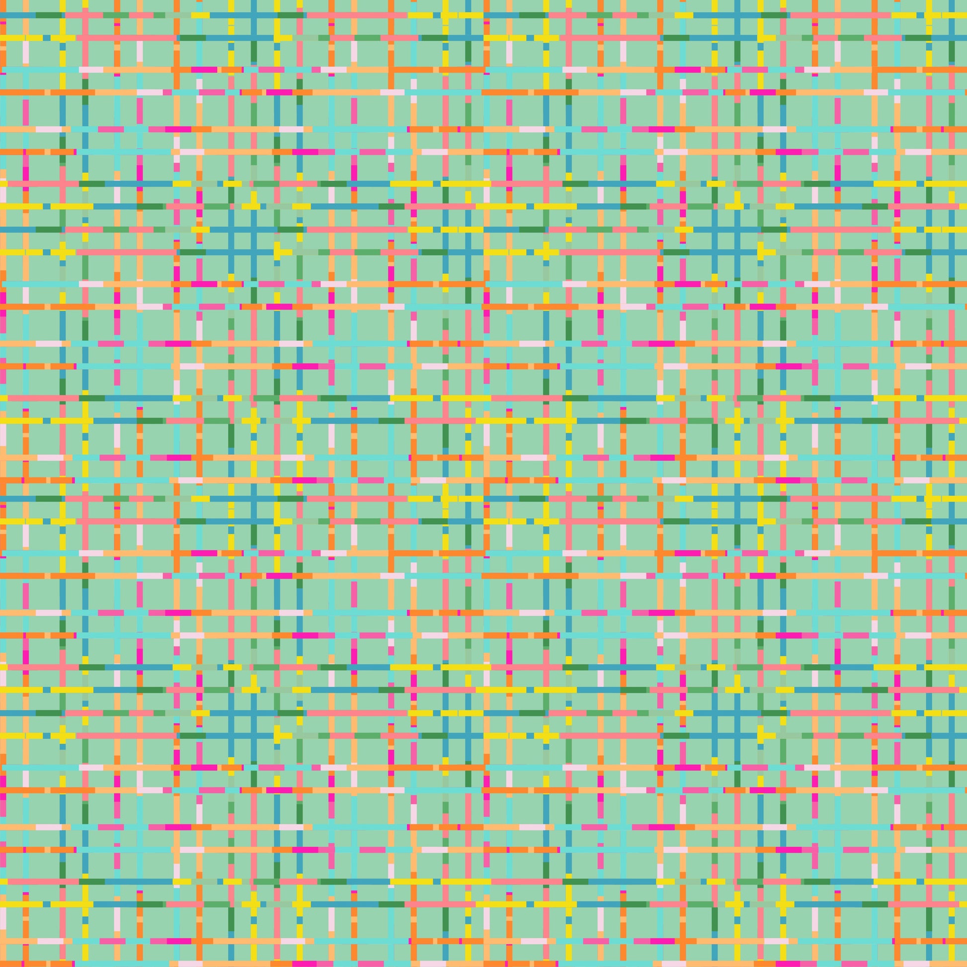 Conjunto de líneas coloridas que hacen que este patrón sea moderno y se aleje de lo obvio. ¡Perfecto para quienes quieren evitar los estampados florales pero mantener el color! Queda increíble en un neceser estructurado, en una tote bag geométrica o en unos pantalones anchos con elástico en la cintura.