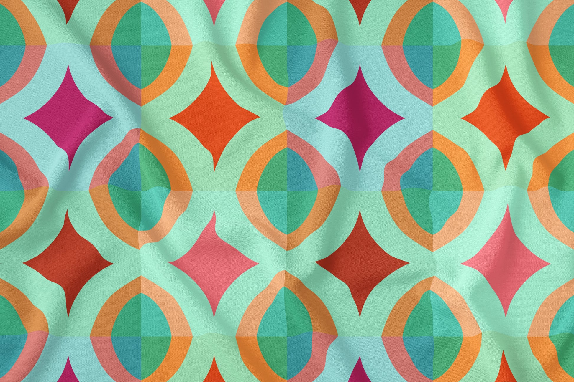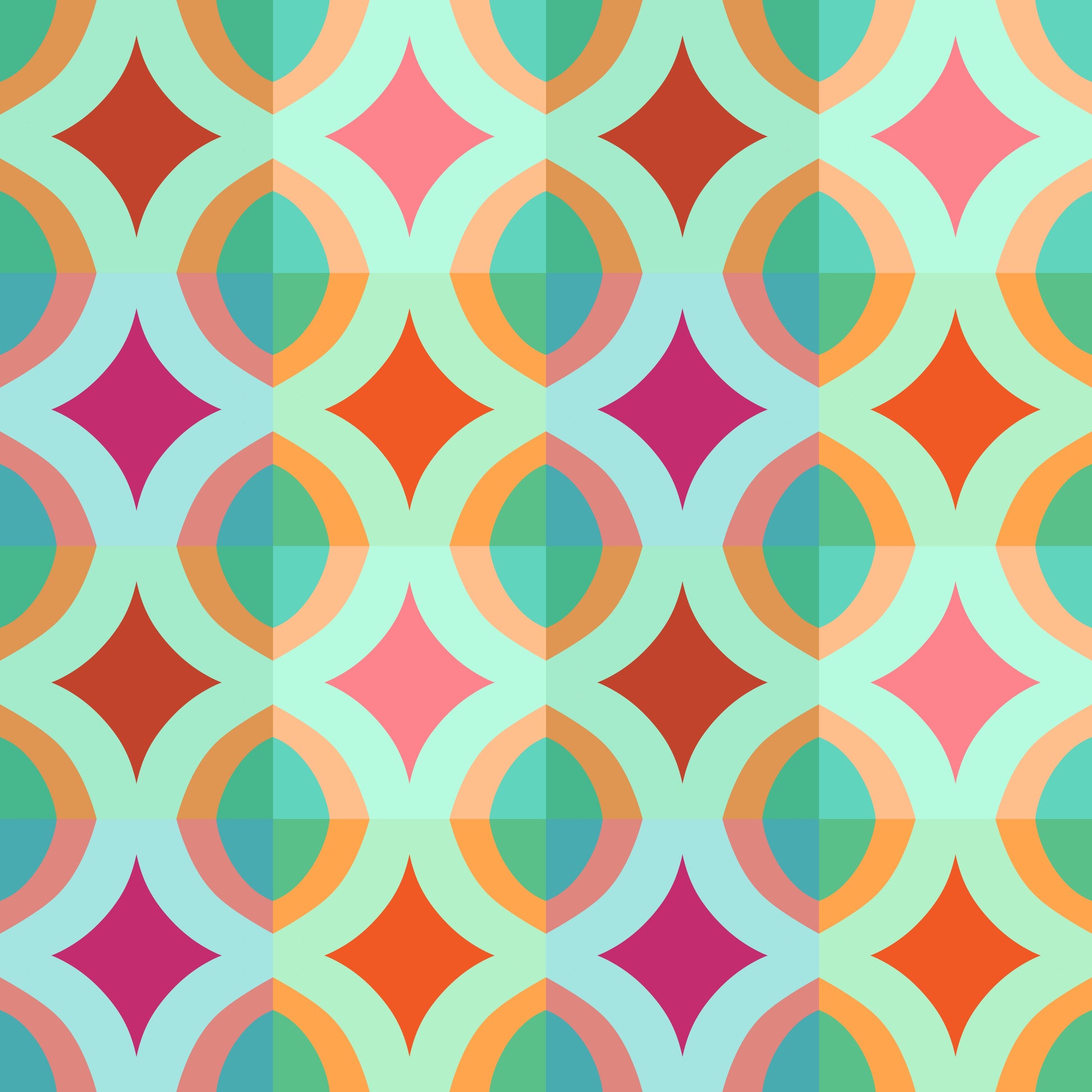 Tremolio simmetrico e colorato in tonalità di verde, arancione e rosa.