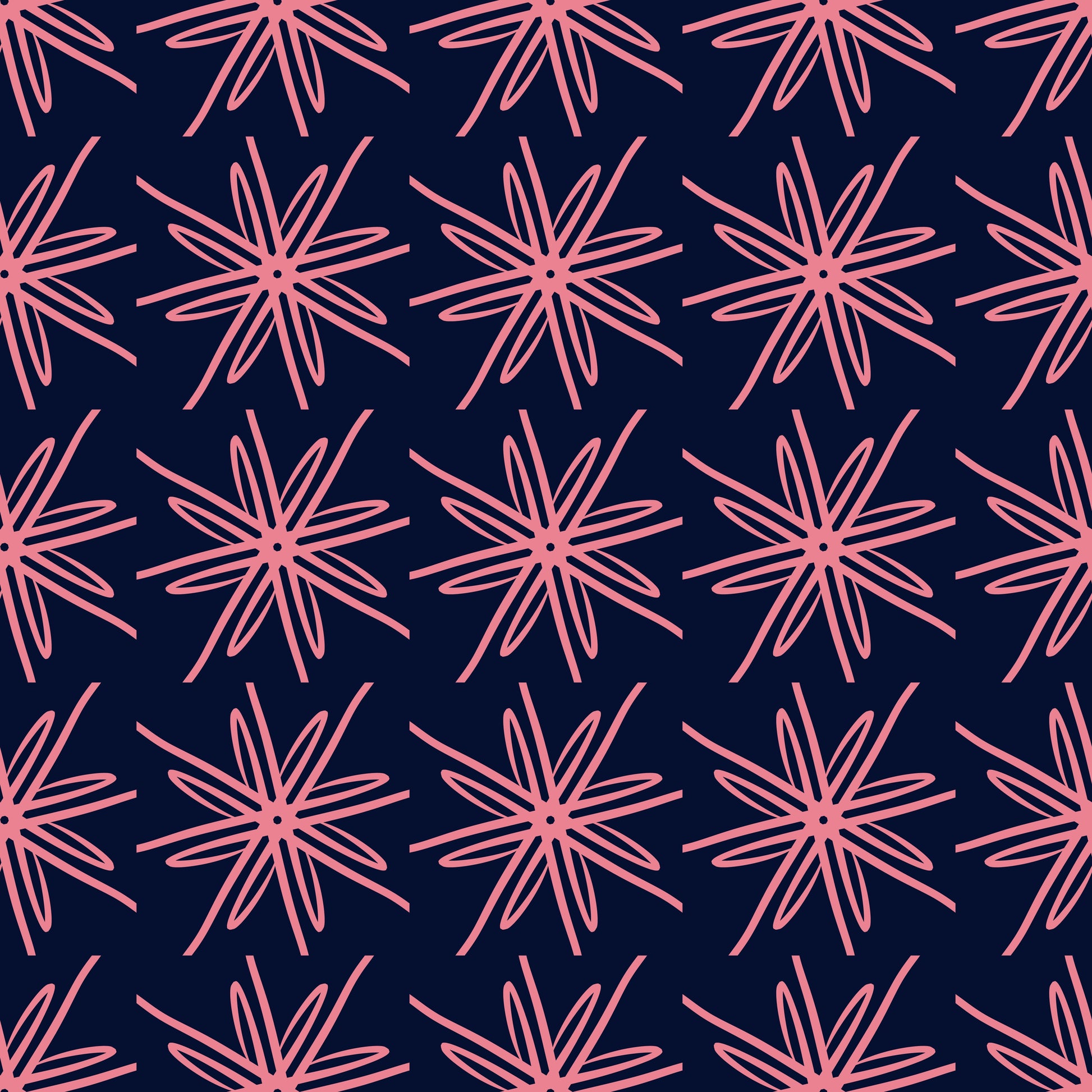 Fiori geometrici rosa su sfondo scuro.