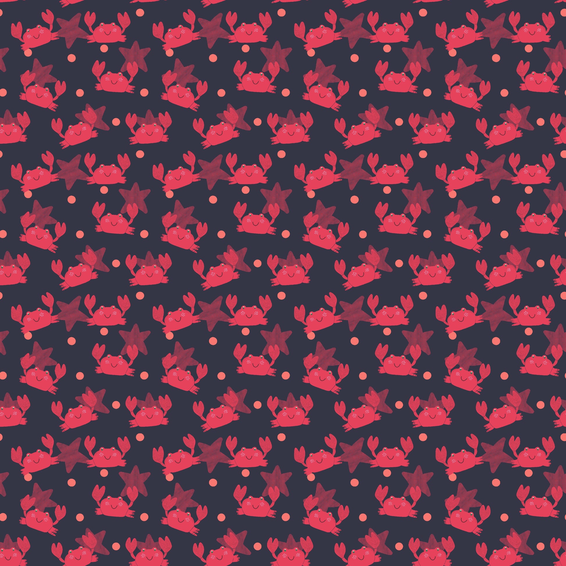 Caranguejos & Mar: O clássico reinventado. Um padrão cheio de ritmo em tons de vermelho e azul escuro, desenhado para quem gosta de temas náuticos sem cair no óbvio.